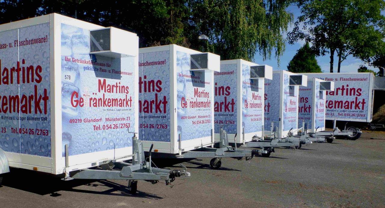 Sie benötigen einen Vorrat an gekühlten Getränken auf Ihrer Veranstaltung und suchen eine handliche flexible Lösung? Dann sind unsere Kühlanhänger genau die richtige Wahl für Sie.